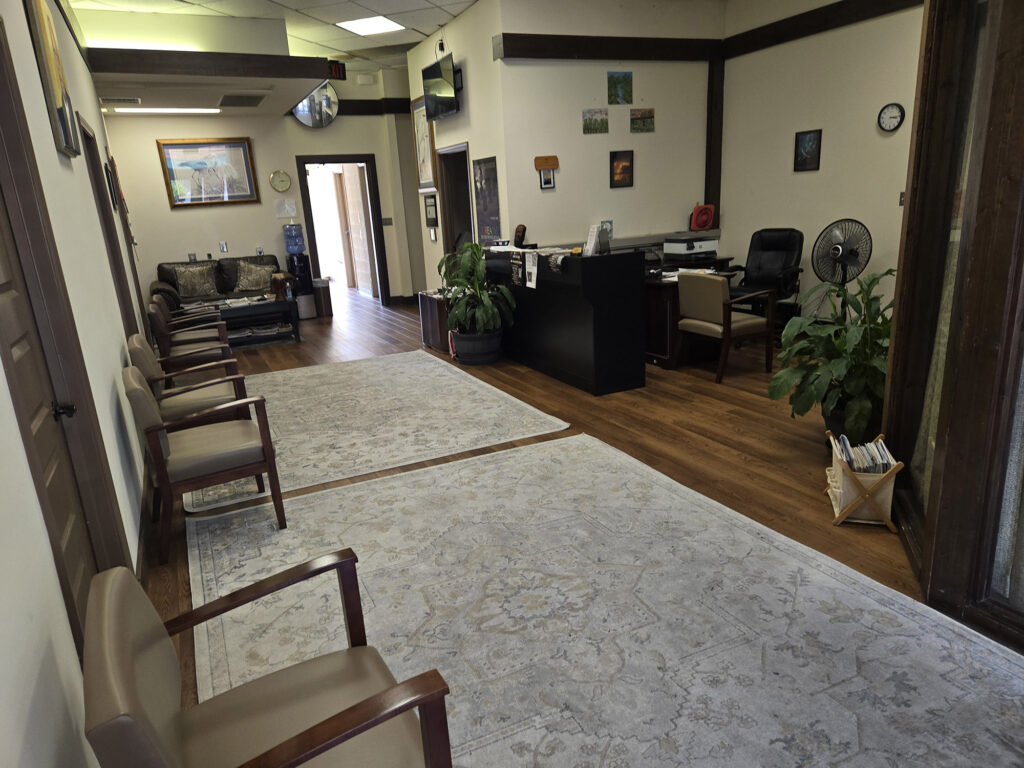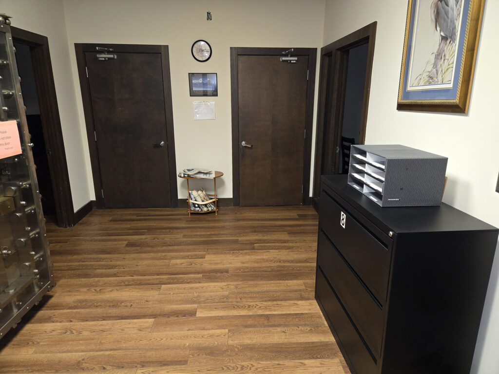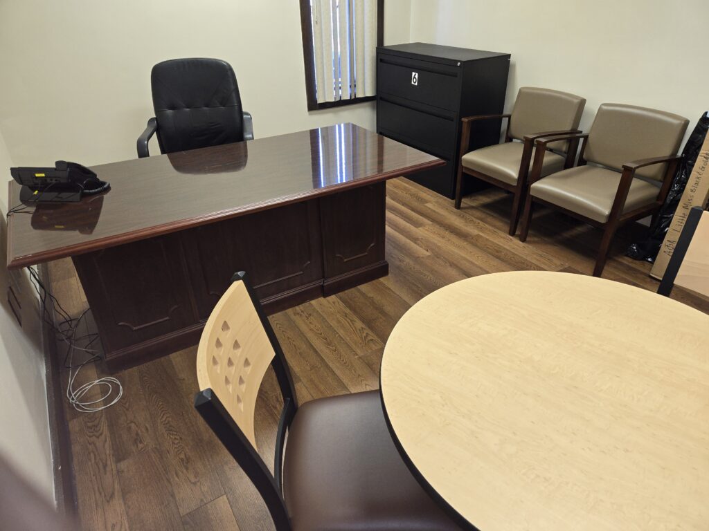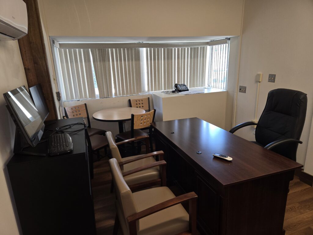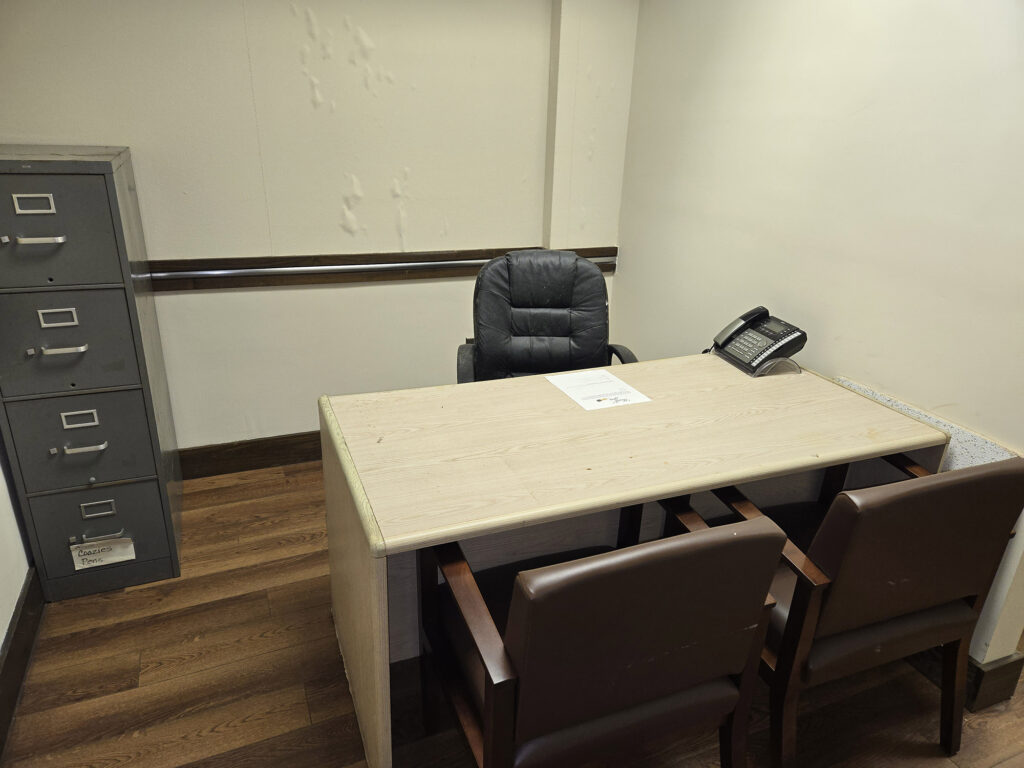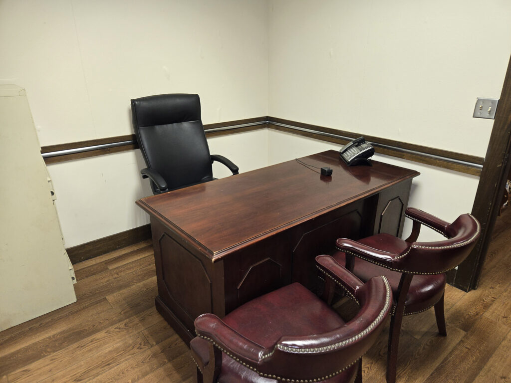1. Fully furnished office (executive desk, executive chair, 2 guest chairs, lateral file cabinet, individual ac/heating system.)